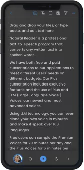 AI text-to-speech built for iOS and Android. Carry AI TTS in your pocket for listening on the go.