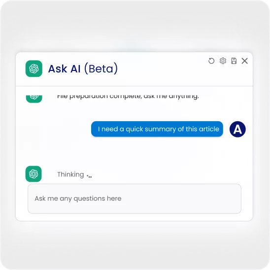 Our AI-powered feature enables you to ask questions directly about the content of your PDFs and receive precise answers in seconds.